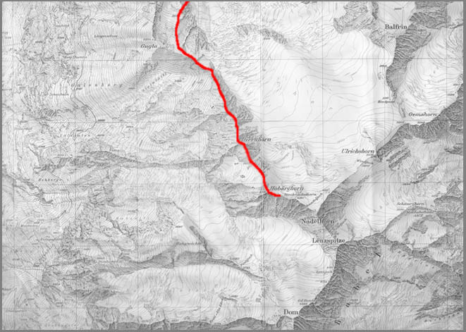 Über den unteren Riedgletscher zum Nadelgrat und über ihn bis zum Hohberghorn.