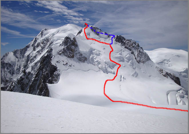 das Col Maudit zur Nordflanke. Erst der Mont Blanc