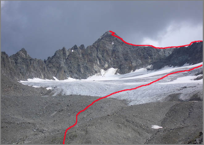 Vom Furkapass über Forstraße nach Norden und dann zum Gletscher. Diesen Queren und vom Ostgrat zum Gipfel.