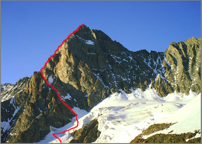 Über den Schreckfirn auf die Rampe und diese zum Südwestgrat. Von diesem auf den Gipfel.