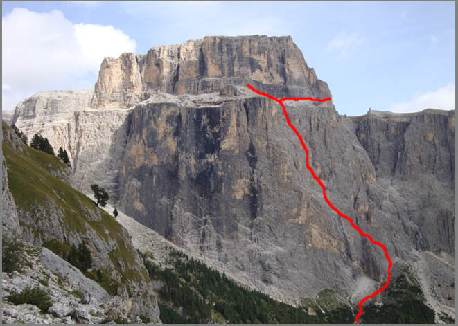 zum großen Band. Der Einstieg zum oberen und dann nach rechts über das Schuttfeld auf den Normalweg.