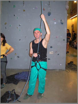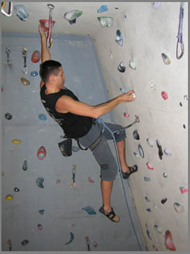 Dachkante wird es wieder leicht überhängend und kleingriffiger. Michi Kletterte die Route am 10.03.08