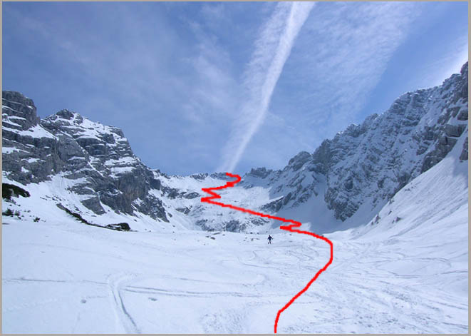 Steiler Schlusshang wurde in Kehren von rechts gegangen.
