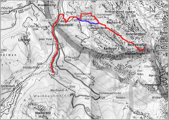 Aufstieg vom Hinterthal über Hirschbichl (Grenze) über die Hänge zur Hocheisspitze hinauf "