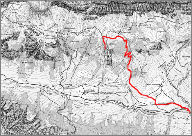 Von der Rotmoosalm in den Sattel und dann über den Nordgrat zum Vor- und Hauptgipfel.