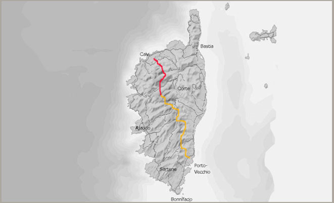 Unser GR 20 von Calenzana bis nach Castellu di Verghi. Die Nordetappe geht bis Vizzanova.